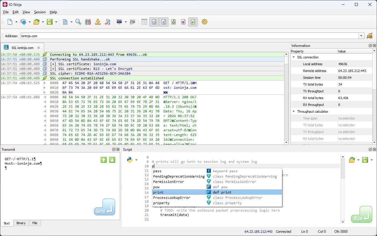 TCP is rightfully called the language of the Internet. IO Ninja turns you into a professional linguist in this department.