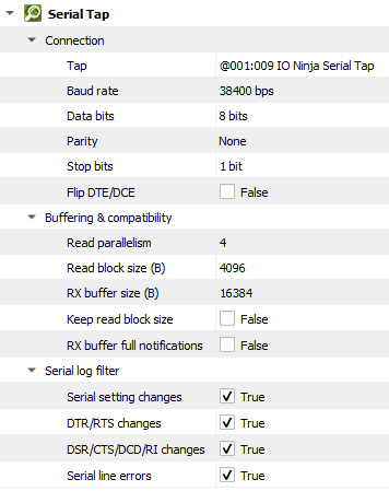 The Serial Tap is a hardware sniffer for monitoring RS232, RS485, and TTL-level UART communications. The sniffer taps into the data and control lines of serial links and sends the recorded data to IO Ninja software in real time. Use this plugin to monitor all communications.