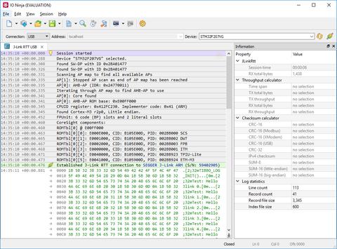 Communications consist of more than just incoming and outgoing data — there are all kinds of other events (connect, disconnect, error, etc.) IO Ninja records everything in a single continuous log sheet to give you a clear timeline of events.