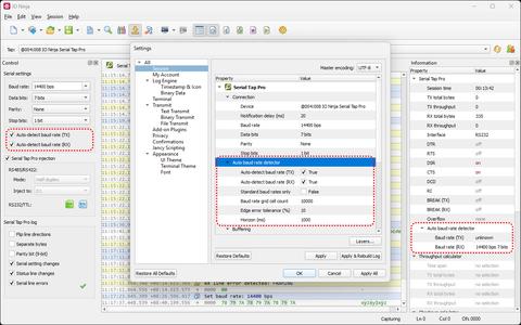 - NEW: Automatic Baud Rate detection (aka ABR) in Serial Tap Pro